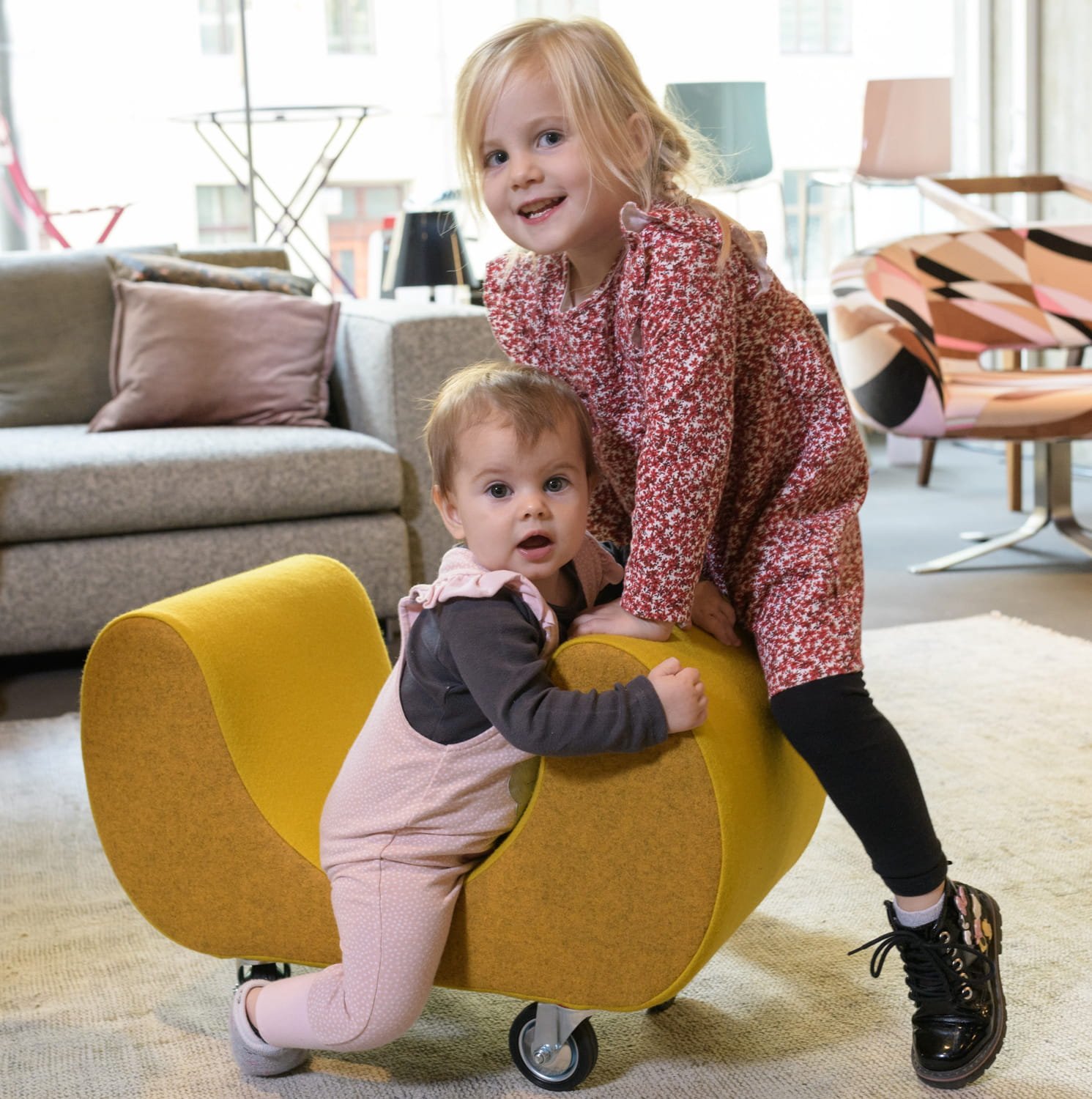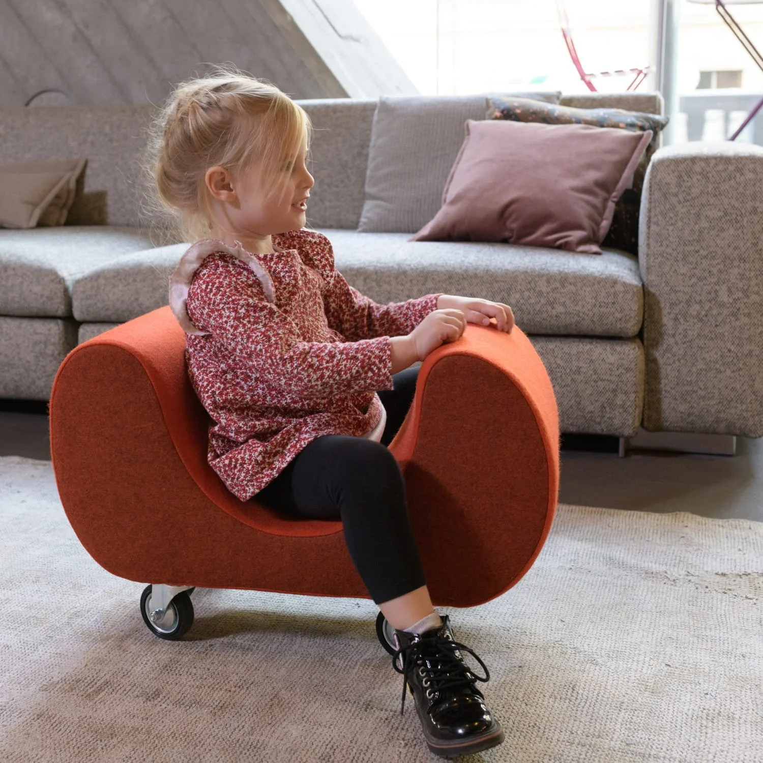 Oblazinjen avtomobil je mobilno igralo na kolesih za otroke od 1 do 6 let. Odlikujejo ga privlačna abstrahirana oblika, prijetne barve, mehkoba in naravni materiali, varnost, edukativnost ter enostavna uporaba in vzdrževanje. Inovativna mobilna enota omogoča urjenje in utrjevanje motoričnih spretnosti. Ponuja prosto in varno gibanje ter prispeva h kakovostnemu okolju za otroke. Bi Biip razveseljuje otroke in odrasle.